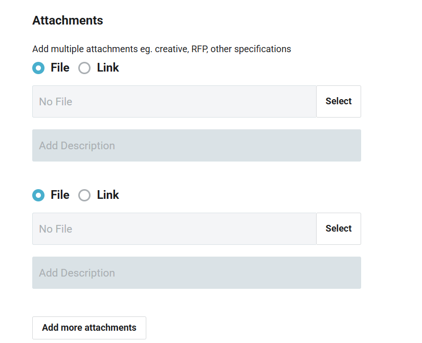 - Attchments (creative, RFP, other specifications).