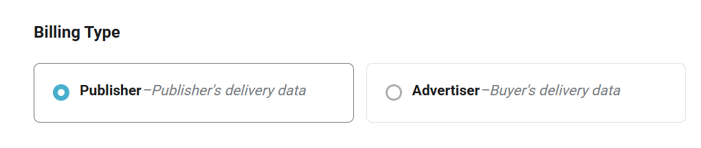 - Billing Type - Publisher or Advertiser.