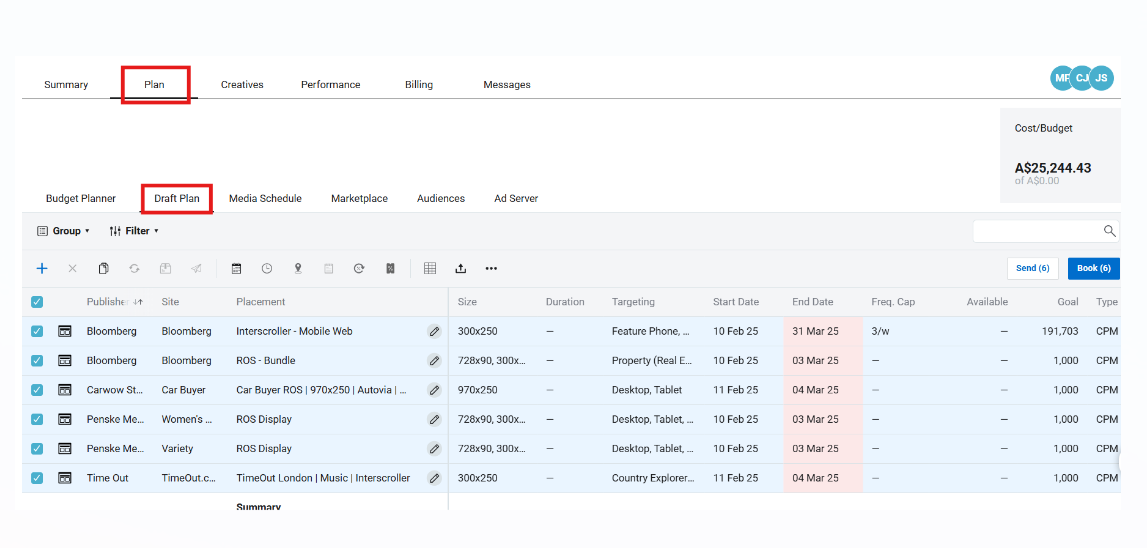 2. When a campaign is chosen, select the “Plan” -> "Draft Plan" tab which is located next to the media schedule.