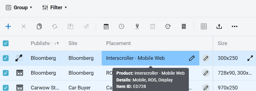 - To edit a line item in the Planner, you can click on any cells from the Placement category onwards.