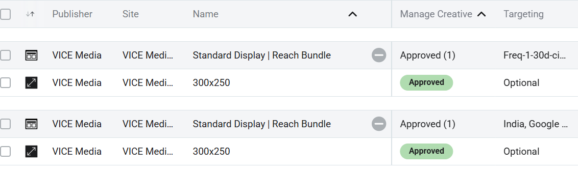 Once creatives are uploaded, the items will be Pending until the publisher approves. Once approved, they are then trafficked into the publisher’s ad server.