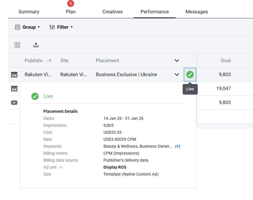 Understanding how creatives are delivering against placement goals is essential to campaign performance and optimisation.